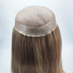 Como fornecedor confiável de apliques de cabelo masculino e feminino na China, também podemos produzir em estoque e sob encomenda para mulheres. Os clientes nos enviam os moldes e amostras de cabelo para a confecção da peça. Este é o topper mono que personalizamos para um cliente. É mono com gaze de poliuretano de 2,5 cm ao redor e o cabelo é repicado em toda a volta, para garantir que o topper tenha uma aparência realista.